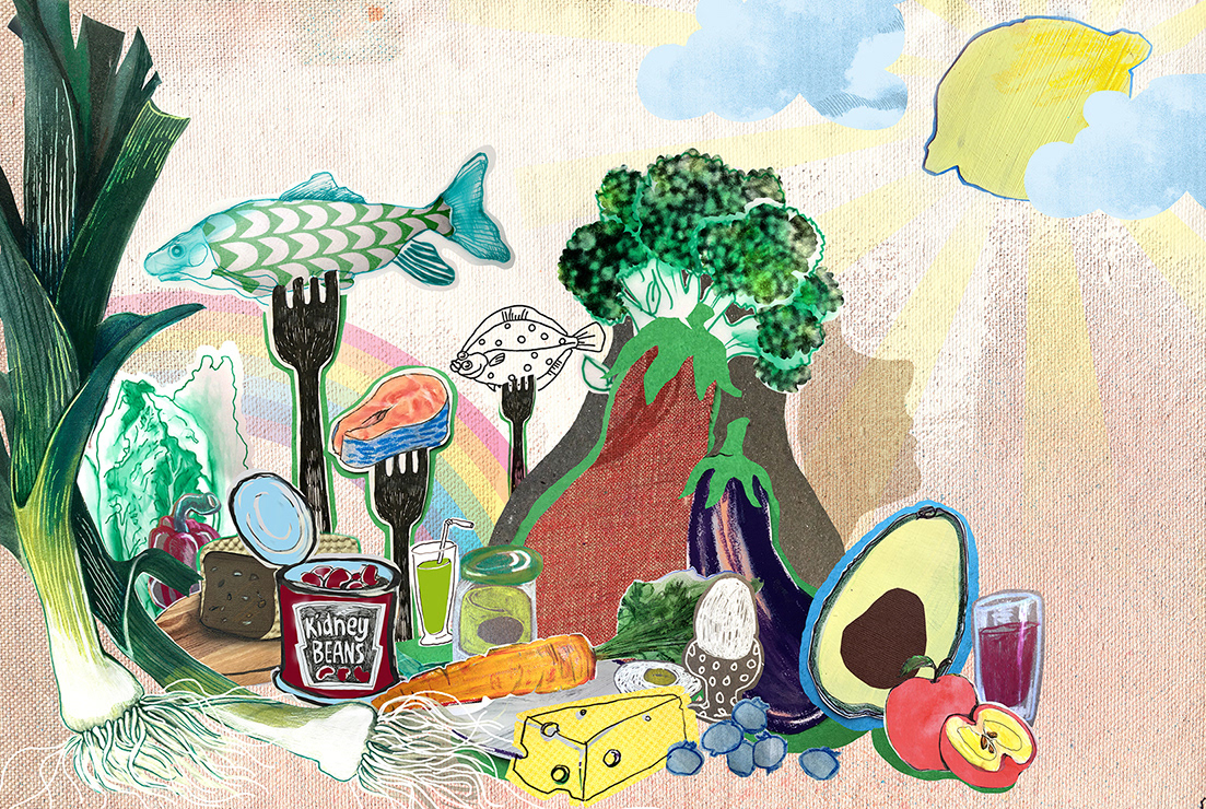 Food collage for Scleroseforeningen Magazine "Lev Med Sclerose", 2021.